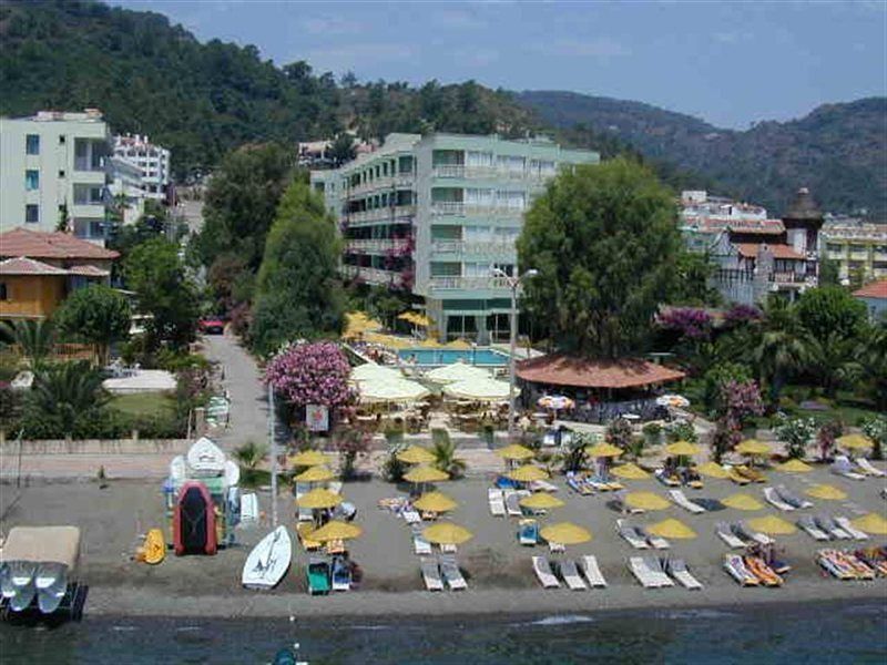 This hotel is located only around 3 km from Marmaris just across the promenade from the beach. Dalaman airport is roughly 90 km from the hotel.The hotel was built in 1985. Travellers are welcomed at the establishment, which has a total of 96 rooms. A lobby and a reception are available to guests. The individual storeys can easily be reached via the lift or stairs. Services such as a safe and a currency exchange service ensure a comfortable stay. Internet access in public areas allows travellers to stay connected. Various gastronomic options are available, including a restaurant and a bar. The grounds of the accommodation feature a playground and an attractive garden. Additional facilities at the hotel include a TV room. Guests arriving by car can leave their vehicles in the garage or in the car park. Available services and facilities include medical assistance, room service and a laundry service.Each of the rooms is appointed with air conditioning, central heating and a bathroom. Most rooms feature a balcony with a view for guests' enjoyment. The carpeted accommodation units feature a double bed. Extra beds can be requested. A safe and a minibar are also available. Internet access, a telephone and a TV add to the comfort of the holiday. Amenities in the bathrooms include a shower. A hairdryer is also available.The establishment features an outdoor pool and a children's pool. A sun terrace, sun loungers and parasols are also available. A poolside snack bar is available. Sport and leisure options include a gym, or for a fee, table tennis and billiards. The accommodation offers an entertainment programme for adults. Copyright GIATA 2004 - 2017. Multilingual, powered by www.giata.com for client no. 125125Catering options available at the hotel include bed and breakfast and half board. Guests can choose to book options such as breakfast or dinner.The following credit cards are accepted at the establishment: American Express, VISA, Diners Club and MasterCard.