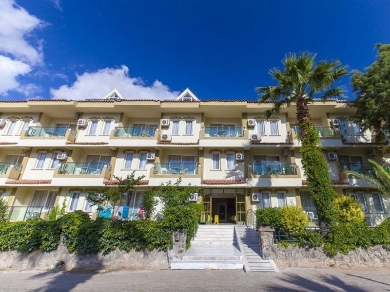 There is plenty going on in the area surrounding the resort, which is just a few minutes' walk from a wide variety of shops, bars and restaurants. The nearest beach is only 800 m away, while Marmaris Beach and its buzzing resort is a mere 1.5 km from the hotel. The airport is approximately 95 km away.This apartment hotel was built in 1992. Travellers can feel at home in one of the 112 rooms. In the air-conditioned hotel, guests are welcomed at the reception area with 24-hour reception and a 24-hour check-in/check-out service. Amenities include a cloakroom, a safe and a currency exchange service. Internet access in public areas allows travellers to stay connected. Various gastronomic options are available, including a restaurant, a breakfast room, a café and a bar. Guests can buy souvenirs at the gift shop. The grounds of the accommodation feature a playground and an attractive garden. Additional features at the apartment hotel include a TV room and a playroom. Guests with their own vehicles can make use of the available parking spaces. Additional services include medical assistance, room service, a laundry service and a hairdresser.Each of the rooms is appointed with air conditioning, a kitchen and a bathroom. Most rooms feature a balcony with a view for guests' enjoyment. The rooms have a double bed or a sofabed. A safe and a minibar are also available. For self-catering guests, there is a well-equipped kitchenette with a fridge, a mini fridge, a cooker and a tea/coffee station. Little extras, including internet access, a telephone, a TV and WiFi (for a fee), contribute to a great stay. The bathroom offers convenient facilities including a shower. A hairdryer is also available.The hotel features an outdoor pool and a children's pool. A waterslide offers fun for all ages. Sun loungers and parasols are ideal for relaxation. Travellers can enjoy a range of refreshing drinks at the poolside bar. A range of options are available, including table tennis, billiards, darts and massage treatments. Guests of all ages have the opportunity to enjoy an interesting entertainment programme. Copyright GIATA 2004 - 2017. Multilingual, powered by www.giata.com for client no. 125125Catering options available at the accommodation include bed and breakfast and half board. Breakfast, lunch and dinner are available. The apartment hotel also offers special catering options.The following credit cards are accepted at the hotel: VISA and MasterCard.