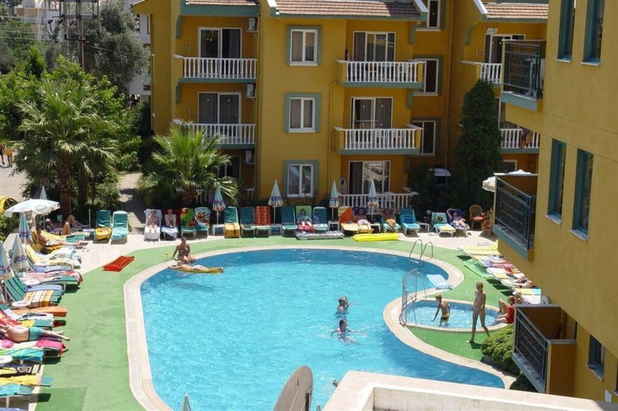 The apartments enjoy a good location in the quiet area of Armatulan, just 2 km from the popular resort of Marmaris, and 1.5 km from Uzun Yali beach. It is only 1.2 km to the beach, which is reachable on foot, by taxi or dolmus (shared taxi). Mugla is around 45 minutes' drive away. Dalaman Airport is some 95 km from the aparthotel.A lobby and a reception are available to travellers. The individual storeys can easily be reached via the lift or stairs. Services such as a safe and a currency exchange service ensure a comfortable stay. Wireless internet access is available to guests in the public areas. Among the culinary options available at the hotel are a restaurant and a bar. Additional facilities at the establishment include a TV room. Those arriving in their own vehicles can leave them in the car park of the accommodation. Additional services include a childcare service, room service, a laundry service and a hairdresser.Each of the rooms is appointed with air conditioning and a bathroom. The standard amenities of most rooms include a balcony. A sofabed ensures a good night's sleep. There is also a safe. The kitchenette is equipped with a fridge and a tea/coffee station. A telephone and a TV add to the comfort of the holiday. Amenities in the bathrooms include a shower. A hairdryer is also available.The hotel features an outdoor pool and a children's pool. A sun terrace, sun loungers and parasols are also available. There is also a poolside snack bar. Active travellers can choose from a range of leisure activities, including table tennis and billiards. Fun and entertainment are offered by a kids' club. Copyright GIATA 2004 - 2017. Multilingual, powered by www.giata.com for client no. 125125Breakfast can be booked.The following credit cards are accepted at the establishment: VISA and MasterCard.