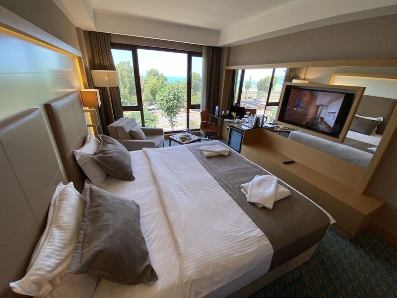 Misafirler için hızlı çıkış, lobide ücretsiz gazete servisi ve kuru temizleme/çamaşır yıkama servisi mevcuttur. Misafirler için gidiş-dönüş havaalanı transfer servisi (24 saat) ücretli olarak hizmet vermektedir, ayrıca otelde ücretsiz vale otopark vardır.Otelin kahve dükkânında/kafede yemek servisi yapılıyor, ayrıca 24 saat oda servisi imkanı da mevcut. Misafirlere her gün 8.30 ve 11.30 arasında ücretsiz açık büfe kahvaltı servisi yapılmaktadır.Trabzon (Ortahisar) içindeBlue Sea Hotel misafirlere Trabzon merkezinde, Varlıbaş Alışveriş Merkezi ve Bedesten ile 5 dakika sürüş mesafesinde konaklama olanağı sunuyor. Bu otel Trabzon Ayasofya Camisi ile 0,8 mi (1,3 km) ve Gülbahar Hatun Türbesi ile 0,9 mi (1,4 km) mesafede.Misafirlerimizin konforu ve rahatı için 19 klimalı oda minibar ve LCD televizyon bulunmaktadır. Misafirlerimize ücretsiz kablosuz İnternet sunulmaktadır. Misafirlerimizin iyi vakit geçirebilmesi için uydu kanalları vardır. Özel banyo, küvet veya duş, ücretsiz banyo/kozmetik ürünleri ve saç kurutma makinesi vardır. Misafirlere emanet kasası ve masa gibi imkânlar ve kolaylıklar sunulmaktadır. Ayrıca günlük olarak oda/kat hizmeti verilmektedir.