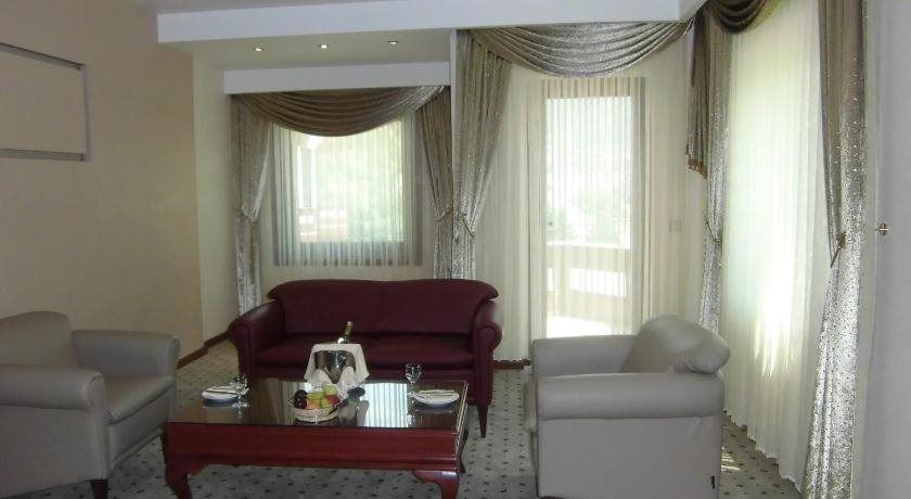 Most of the storeys can be reached by lift. Services and facilities at the hotel include a safe, a 24-hour security service, a transfer service, a laundry service and a page service. Wireless internet access is available to guests in the public areas. There is also a garden. Those arriving in their own vehicles can leave them in the car park of the hotel.The accommodation features rooms with central heating. A balcony is included as standard in most rooms, offering additional space for relaxation. A safe and a desk are also available. The advantages of the rooms include a mini fridge. Internet access, a telephone, a TV and WiFi ensure optimal comfort. Amenities in the bathrooms include a bathtub. A hairdryer is also available. As a special feature in the bathrooms, travellers enjoy cosmetic products.The establishment offers a selection of sport and leisure opportunities. A range of options are available, including a sauna, a hammam and massage treatments. Copyright GIATA 2004 - 2017. Multilingual, powered by www.giata.com for client no. 125125The accommodation offers breakfast, lunch and dinner.