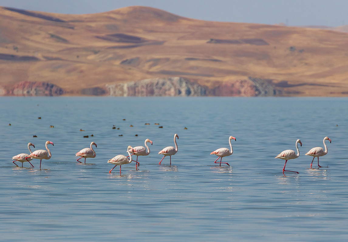 Sabah otelde alınan kahvaltı sonrası 2286m rakımlı Hanlar Geçidi’ni kullanarak Digor üzerinden yolumuz üzerinde Halıkışla’da Arpaçay ve Aras nehirlerinin birleştiği noktada Ermenistan’a ait evleri ve sınırımıza çok yakın kurulmuş olan Metzamor Nükleer Santrali’ni de görebiliyoruz. Uzunca bir süre Ermenistan sınırına paralel yolculuğumuz ardından Tuzluca’ya ulaşıyoruz. Dileyen misafirlerle, Tuzluca’da Hititler Dönemi’nden beri kullanılan, yaklaşık 30 milyon yıl önce oluşmuş kaya tuzu tabakaları bulunan, mağarayı ziyaret ediyoruz. (Ekstra) Halen aktif olarak kaya tuzu çıkartılan bu mağara, son yıllarda turizme açılmasıyla birlikte bölgeye gelen ziyaretçilere eşsiz bir deneyim yakalama fırsatı sunmaktadır. Tuz Mağarası ziyaretimizin ardından Iğdır Ovası’nı ve il merkezini panoramik görerek yolumuza devam ediyoruz. Doğu’nun Çukurova’sı olarak adlandırılan Iğdır Ovası, yüksek dağların arasına sıkıştığı için etrafına göre çok daha yumuşak ve ılıman bir havaya sahiptir. Bu sebeple ovada her türlü sebze ve meyve hatta pamuk bile yetişmektedir. Iğdır’ın sırtını dayamış olduğu, 5137 mt.lik yüksekliğiyle ülkemizin en yüksek dağı olan Ağrı Dağı’nı fotoğraflamak için uygun bir noktada fotoğraf molası veriyor, ardından İshak Paşa Sarayı’na çıkıyoruz. 220 yıllık bu saray yapıldığı günden buyana tüm Doğu Anadolu’nun sembol yapısı olmuştur. Bütün ovaya tepeden bakan konumuyla, birbirinden eşsiz taş işlemeli anıtsal kapılarıyla, 116 odalı muhteşem bir saray yapısı bizi bekliyor. Saray gezimizden sonra Van ’a doğru yola çıkıyoruz. Tendürek Dağı Geçidi’nden (2644 mt.) geçerken katılaşmış volkanik lavları, Çaldıran Ovası’ndan geçerken meşhur savaşın geçtiği alanları görüyoruz. Bendi Mahi Çayı üzerindeki Muradiye Şelalesi’nde fotoğraf molası verdikten sonra Doğu’nun Paris’i de denilen ve ülkemizin en büyük gölü olan Van ‘Denizi'nin kıyısına kurulmuş olan Urartular döneminde Tuşpa adıyla anılan Van’a ulaşıyoruz. Van Kalesi’ni panoramik görüp fotoğrafladıktan sonra, son dönemde ziyarete açılmış ülkemizin en güzel ve özel müzelerinden biri olan Van Urartu Müzesi'ni geziyoruz. Van bölgesi ve özellikle Urartu medeniyetine ait en özel eserlerin sergilendiği bu müze sizleri kendine hayran bırakacak. Günün sonunda Van denince akla ilk gelen Van Kedilerini görmek için Kedi Evi’ne uğruyoruz. Burada vereceğimiz zamanda bu küçük tatlı dostlarımızı sevebilir, harika fotoğraflarını çekebilirsiniz. Kedi Evi ziyaretimiz sonrasında müzede gördüğünüz Urartu Gümüş Takıları’nın örneklerini ve nasıl yapıldığını görebilmek için atölyeye geçiyoruz. Ustamız burada hem Urartu takılarını hem de Osmanlı Dönemi’nde kullanılan Savat işçiliğinin ayrıntılarını gösterecek. Sonrasında gezilerimiz tamamlamıyor ve otelimize ulaşıyoruz. Akşam yemeği ve konaklama otelimizde.