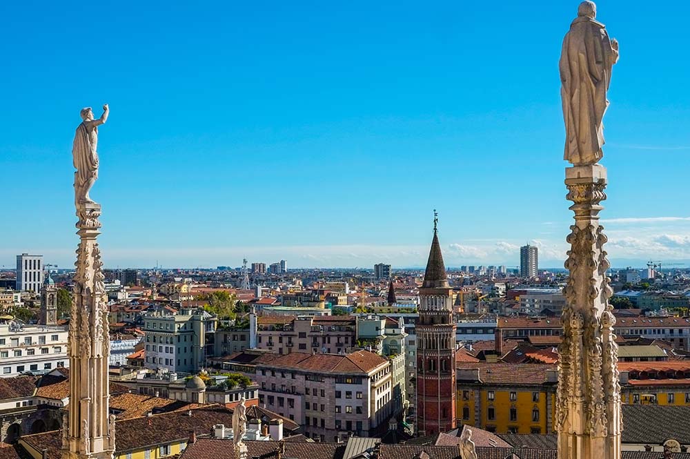 için hareket ediyoruz. Panoramik Milano şehir turumuzda; şehrin simgesi olarak